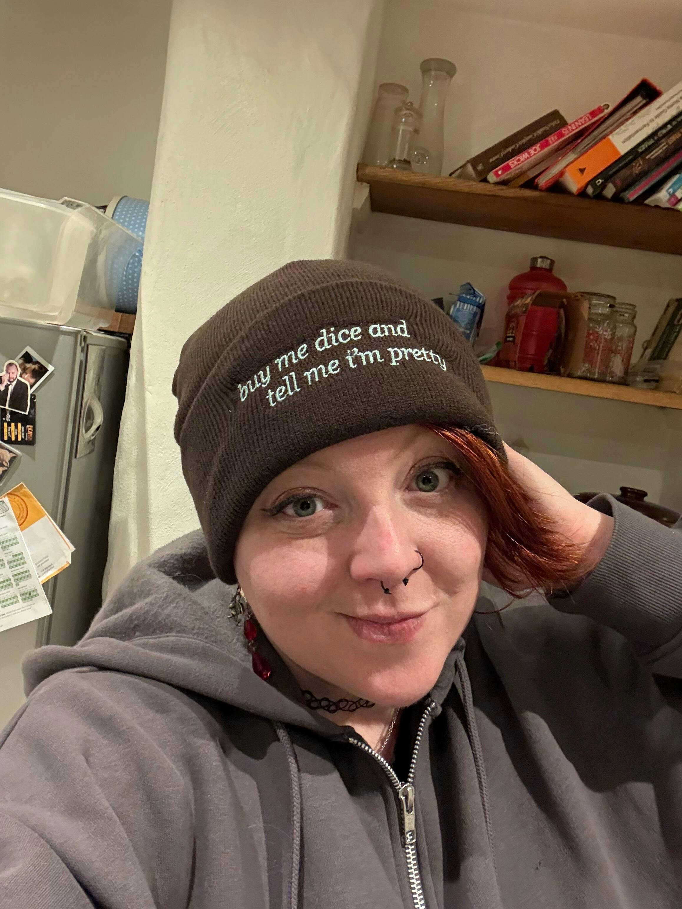 These beanies are DEEPLY soft and cosy, and the embroidery is high quality and gorgeous! Wear your love for dice on your forehead - literally - and while you're at it, reap some compliments too 👀